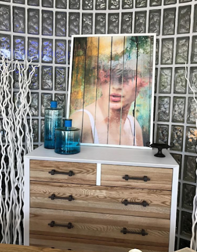 3- Aparador/Mueble Auxiliar: Dependiendo de la altura, un cuadro apoyado o colgado y una lámpara de sobremesa, un par de velas..... o un simple jarrón de cristal o botella con flores u hojas naturales.